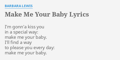 Make me your baby. Barbara Lewis - Make Me Your Baby Lyrics. About Make Me Your Baby Make Me Your Baby is a song written by Helen Miller and Roger Atkins which was a hit for Barbara Lewis in 1965. Browse for Make Me Your Baby song lyrics by entered search phrase. About Make Me Your Baby Make Me Your Baby is a song written by Helen Miller and Roger Atkins which was a hit for Barbara Lewis in 1965. Im gonna kiss you in a special way. Youll know a love no one has known before. Kiss me kiss me and maybe. ----- Make Me Your Baby chords Barbara Lewis 1965 Helen Miller Roger Atkins E A 2x A E A Im gonna kiss you in a special way D E Make me your baby A E A Ill find a way to please you every day D E Make me your baby A Fm Make me make me your baby A Fm Kiss me kiss me and maybe Cm You will see D E Paradise is waiting for you and me.