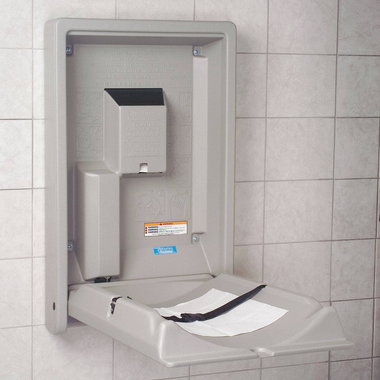 Steel pivot rod secured in a metal tube offers sustained resistance to wear and improved durability. Baby Changing Stations from Koala Kare Exclusive New Zealand Distributor of Wall Mounted Diaper Changing Stations. We offer wall-mounted seats and vertical tables that include safety straps to keep the child secure and safe as well as changing tables with stainless steel covers to ensure maximum hygiene and cleanliness.