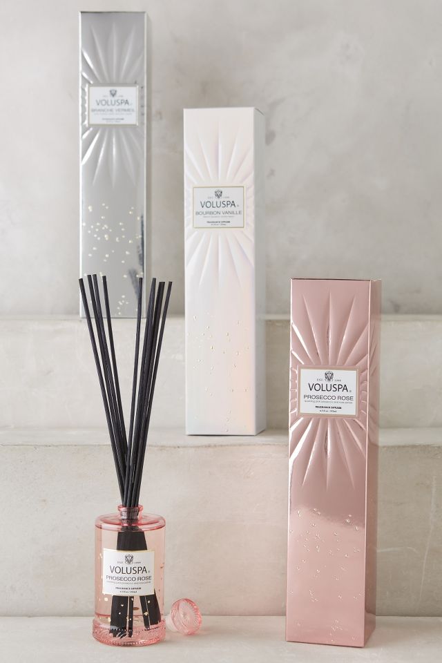 The fragrance diffuser contains an aromat. Voluspa - Vermeil Diffuser - Sparkling Rose - 192ml Amara UKAPAC. With 10 fine-gauged rattan reeds this custom diffuser is powerful without being overwhelming.